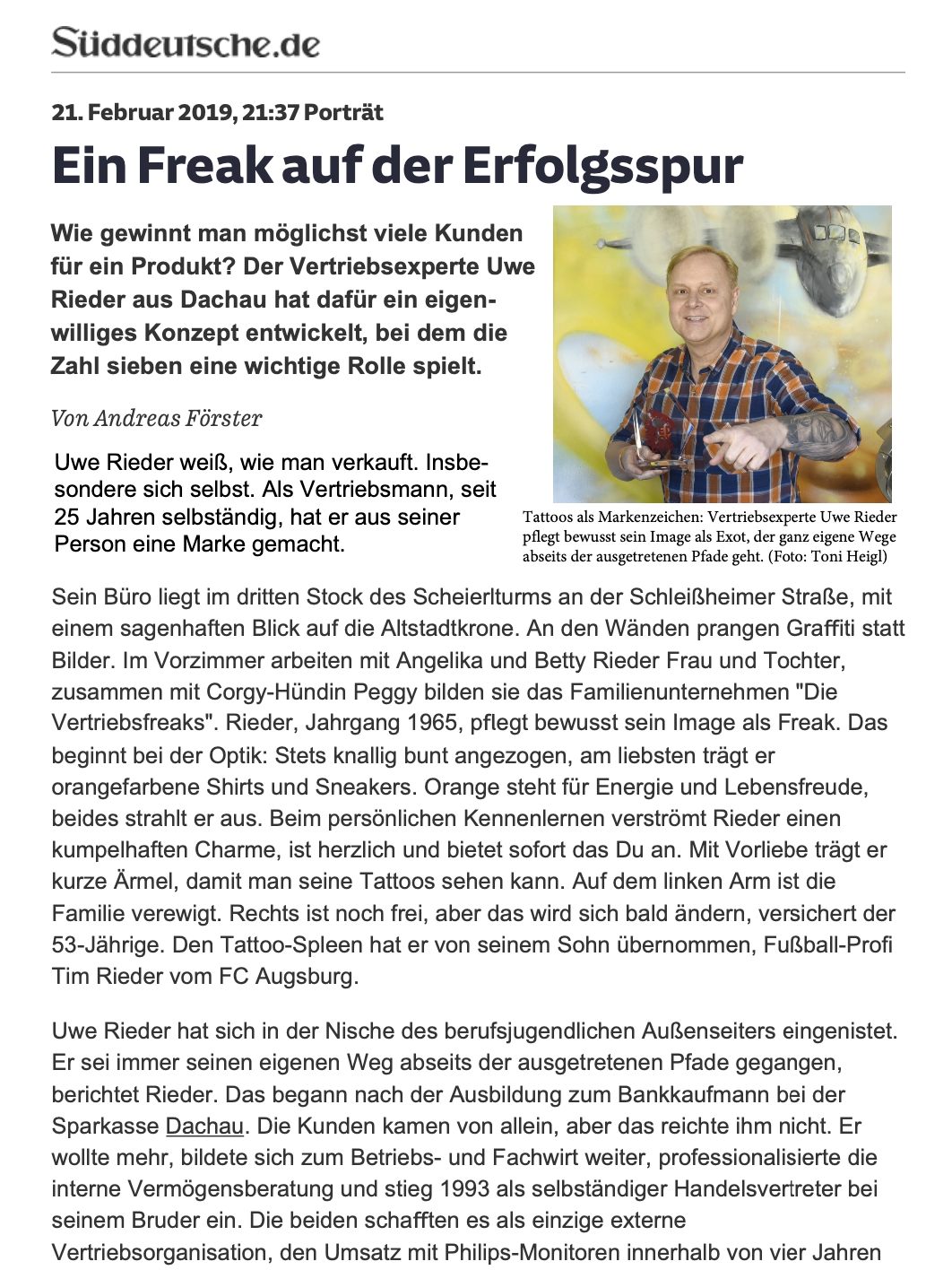 Wodurch daraufhin mein Weg zum „bayerischen Vertriebsfreak“ begann. Und ich seitdem all mein Wissen und all mein Know-How 1:1 weitergebe. Und zwar nicht an Konzerne oder größeren mittelständischen Unternehmern, sondern speziell fokussiert auf Unternehmer und Selbstständige mit 0 bis 10 Mitarbeitern. Also auch Einzelunternehmer, auch Solopreneure genannt. Ganz egal, welches Produkt oder welche Dienstleistung sie an den Mann oder an die Frau bringen möchten. Branchenunabhängig!